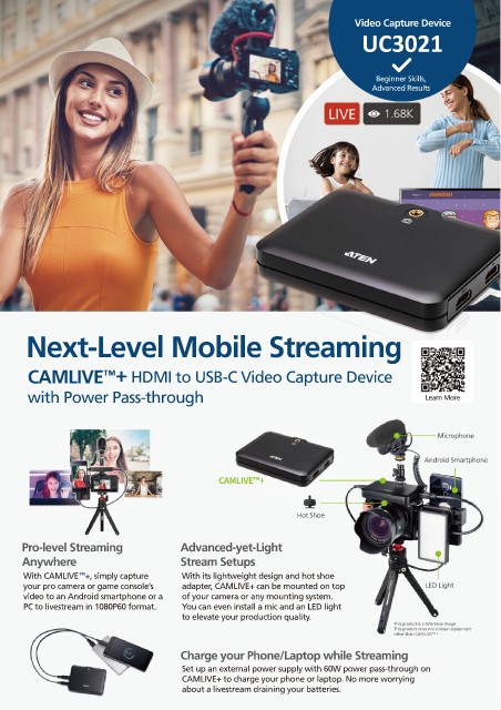 Pro-level Streaming Advanced-yet-Light Android 5.0.1 and above with UVC support supporting Bluetooth Low ˙iPad Pro (1st and 2nd gen) ˙School Live Event Set Up Your Streaming Take Your Content Variety of HDMI Video