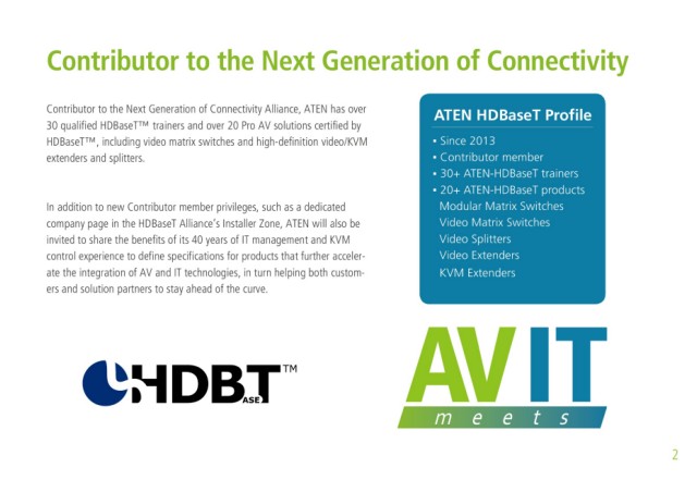 company page in the HDBaseT Alliance’s Installer Zone, ATEN will also be