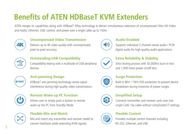 Benefits of ATEN HDBaseT KVM Extenders HDBaseT KVM Extender Series