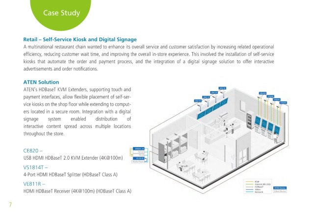 efficiency, reducing customer wait time, and improving the overall in-store experience. This involved the installation of self-service accessed throughout the facility. This involved long-distance transmission of video with superior quality and control over computers