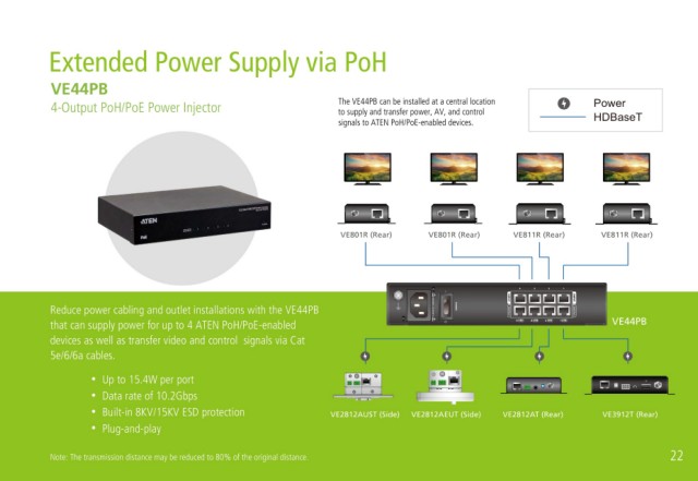 that can supply power for up to 4 ATEN PoH/PoE-enabled VE44PB