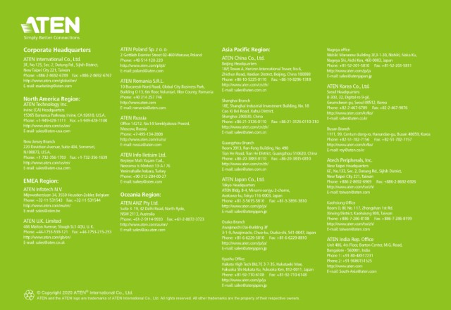 E-mail: sales@aten-usa.com Neorama Is Merkezi 13-A / 76 E-mail: sales@aten.com.cn New Taipei Headquarters