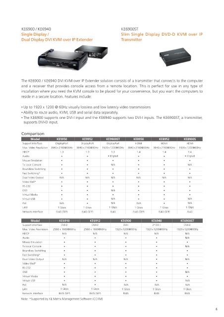 • The KE6900 supports one DVI-I input and the KE6940 supports two DVI-I inputs. The KE6900ST, a transmitter,