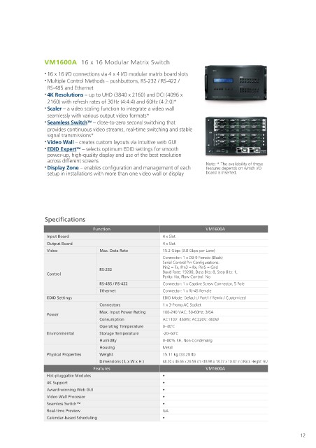 VM3200 32 x 32 Modular Matrix Switch VM1600A 16 x 16 Modular Matrix Switch