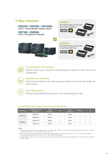 VE816R HDMI • 100m • • • • • VE883K2T HDMI • 10km • •