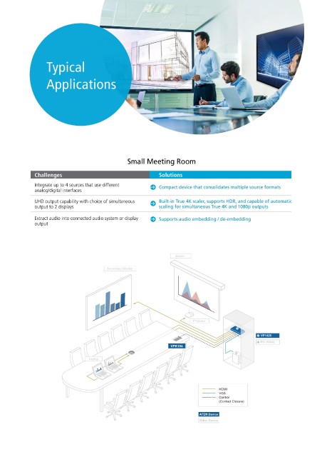 Integrate up to 4 sources that use different Compact device that consolidates multiple source formats Projectors or displays are located up to 140m feet away Supports long distance transmission via HDBaseT